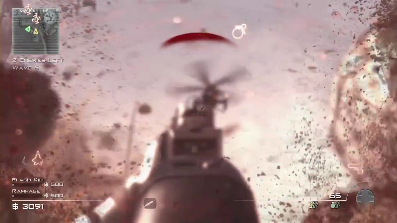 9-Strafe Run-5機のヘリコプターによる機銃掃射を行う。